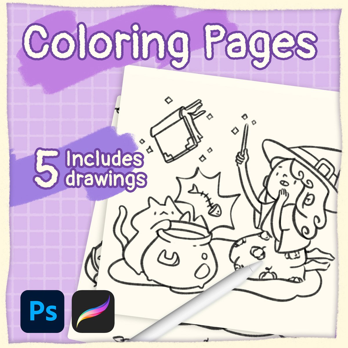 12 brushes, 60+ Copic marker colors, drawing pages and Procreate tips!